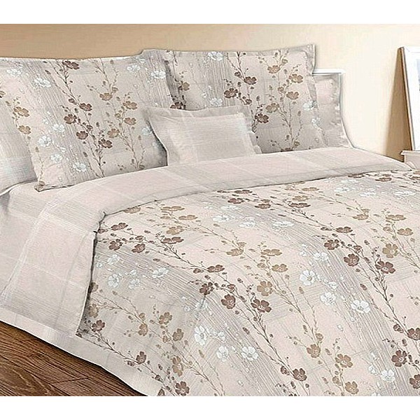 Комплекты постельного белья из белой бязи люкс с серыми цветами серии Нежность.