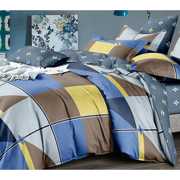 Постельное белье из черного поплина с желто-серой абстракцией и серо-черным компаньоном