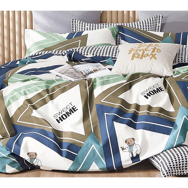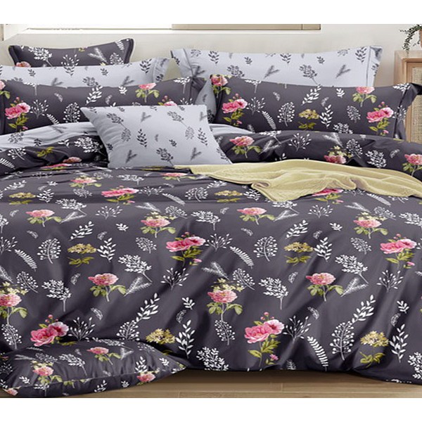 Постельное белье из серо-коричневого поплина с черно-белыми рисунками и молочно-кофейным компаньоном