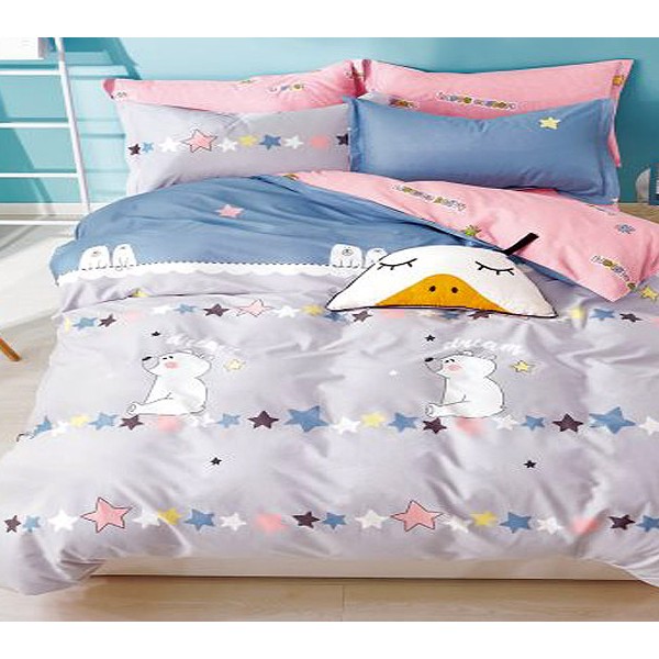 Детский - возможный размер наволочки на молнии: 40х60; 50х50;60х60 см, простыня 115х145 см, пододеяльник с молнией 124х124 см;