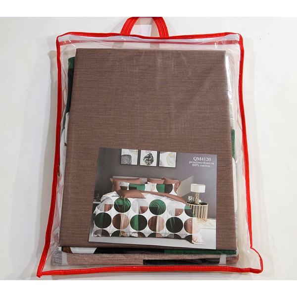 Комплект "Зима-Лето" из белого поплина с зелено-коричневыми кругами и коричневым компаньоном пододеяльник простёган с синтепоновой прослойкой.