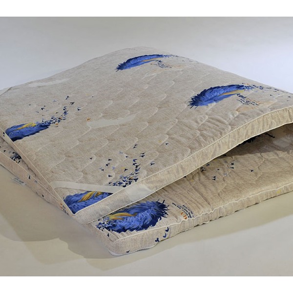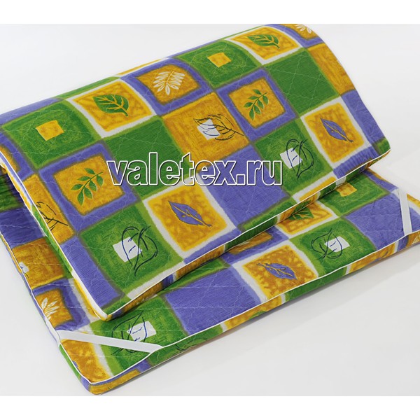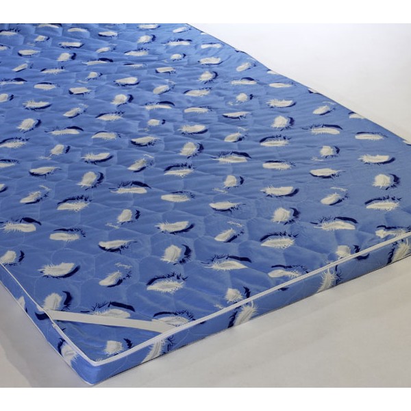 Поролоновый (пенополиуретановый) матрас средней жёсткости в чехле из полиэстера с синтепоном и многоигольной стёжкой и длинной молнией с торца.