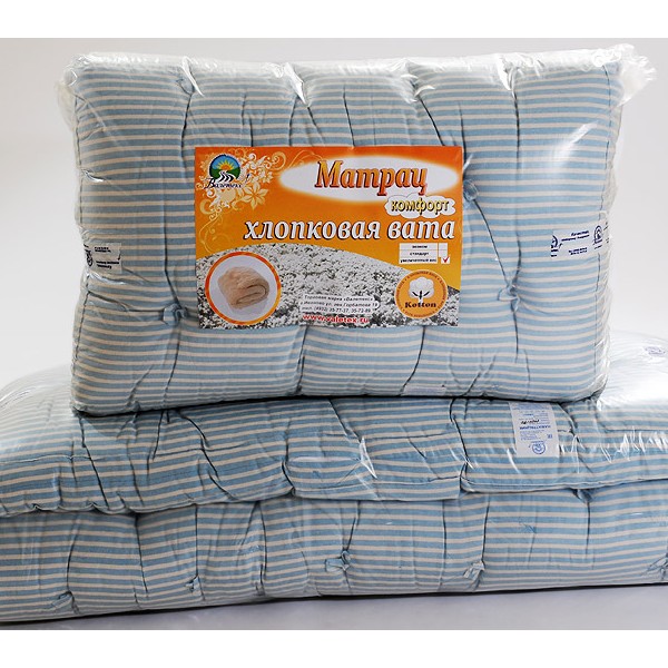Ватный матрас серии "Комфорт" с увеличенной массой наполнителя на 50% в сравнении с ватного матраса серии Стандарт аналогичной длины, ширины и высоты борта в 7 см.