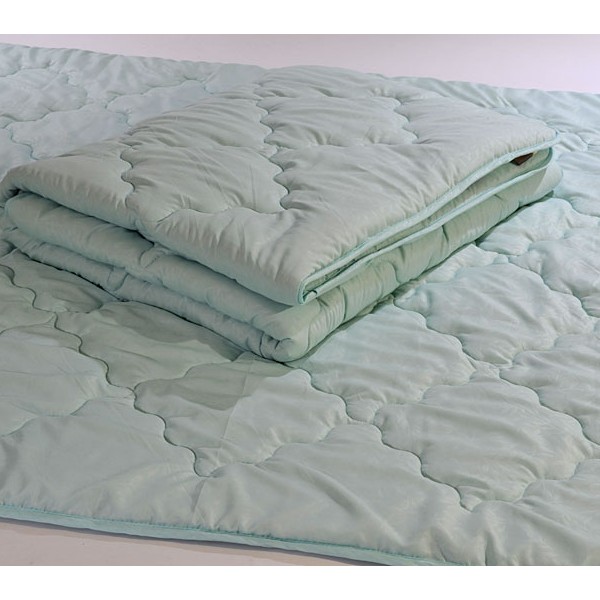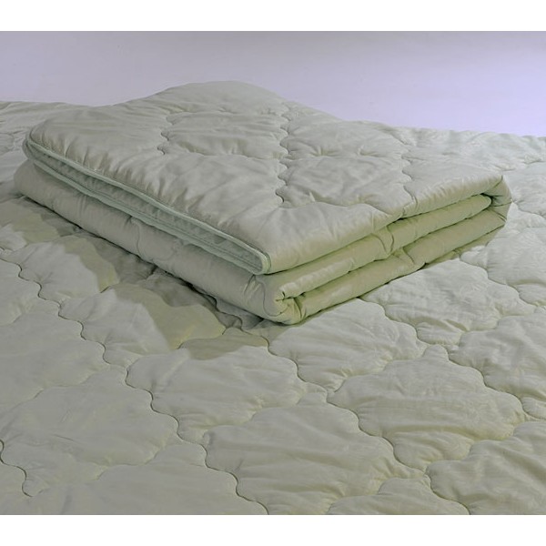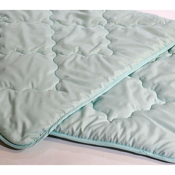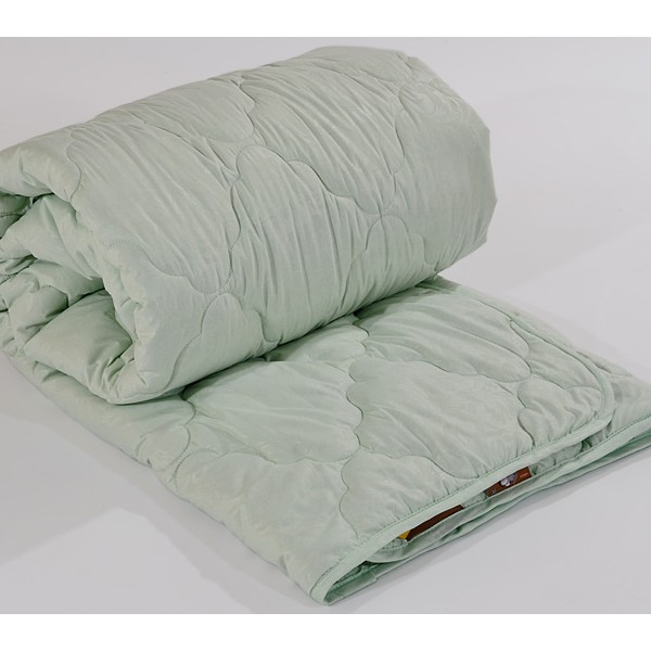Всесезонное одеяло с наполнителем из чёсаной в чехле из красивой микрофибры в постельных тонах.