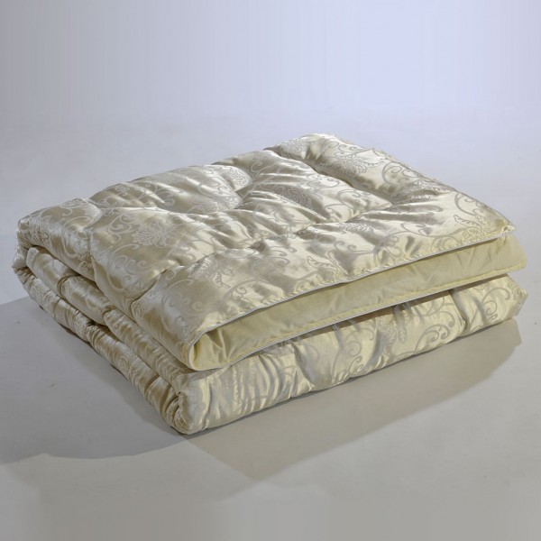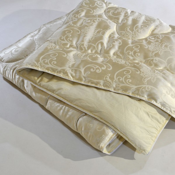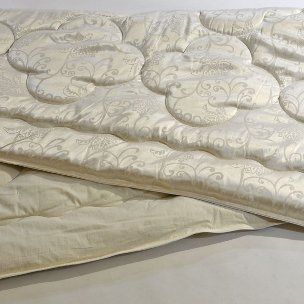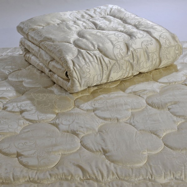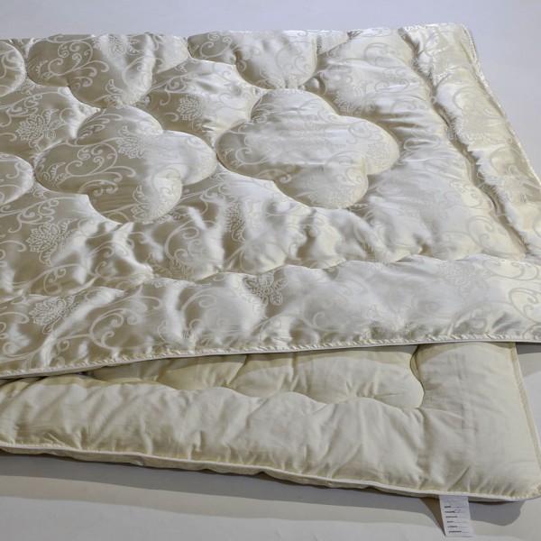 Тяжёлое одеяло из чёсаной хлопковой ваты внутри, верх - нежный, красочный атлас, низ - мягкий, хлопковый сатин.