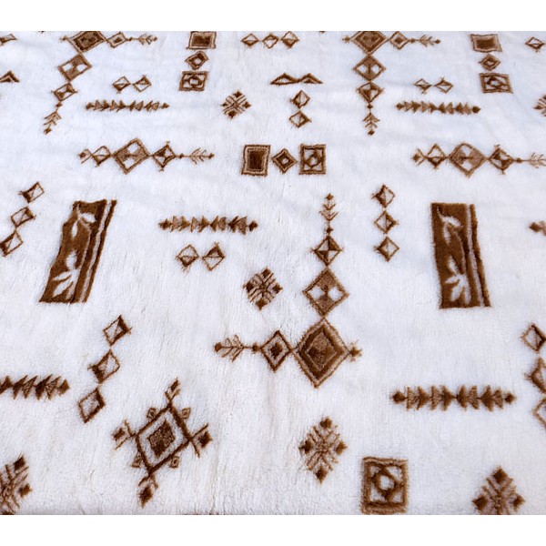 Теплый и мягкий плед из двухстороннего меха кремового фона с карамельными рисунками и окантовкой вцвет.