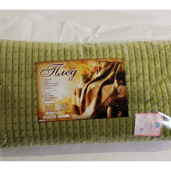 Лёгкий, эластичный и приятный к телу плед из лёгкого велсофта, края обработаны оверлоком и подшиты.