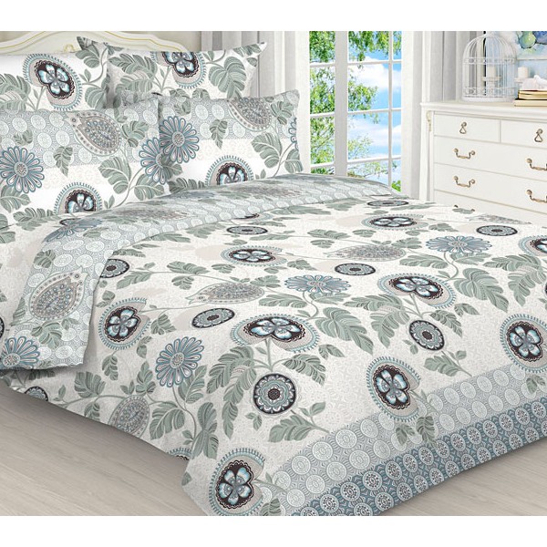 Простыни из голубой бязи эксклюзив Одуванчик с большими белыми одуванчиками.