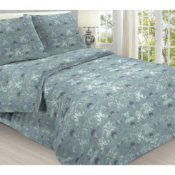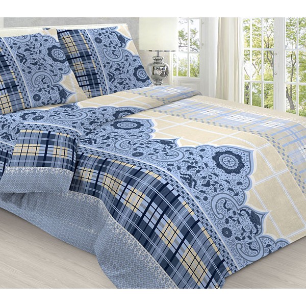 Простыни из светло-синей бязи эксклюзив Вереск с черными и белыми ветками.